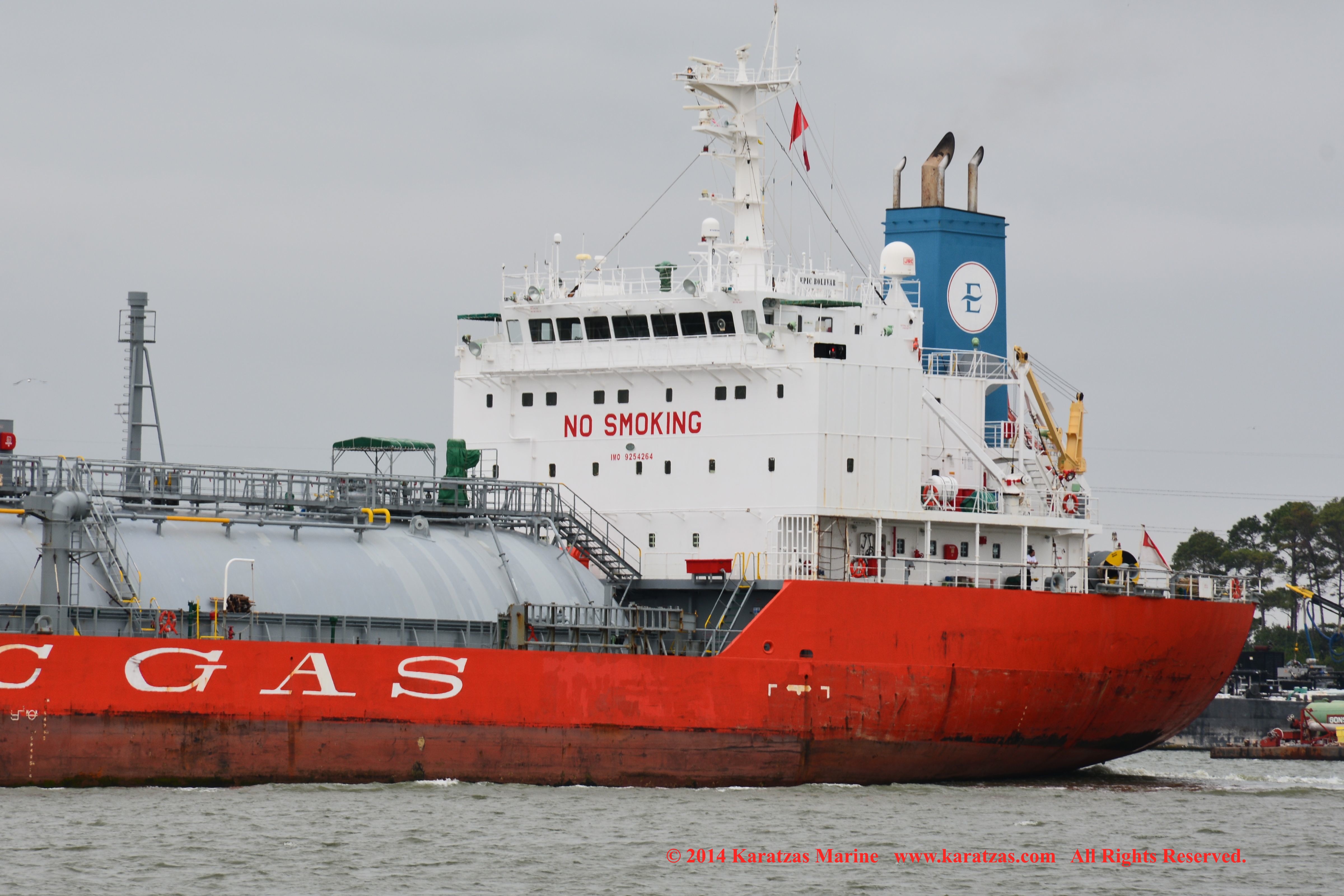 CARGO HANDLING DETAILS: Cargo Capacity of 5,250 cu.m., Primary Cargo is Butane, Vessel can carry anhydrous ammonia, 4 Cylindrical horizontal Semi-refrigerated tank(s), Minimum tank temperature of -48 degrees Celsius, Maximum tank pressure of 11.20 kilograms force per square centimeter (absolute), 4 Deepwell Pump(s), 1 Booster Pump(s). 3 Compressors, Maximum discharge capability of 520 cu.m./hr.