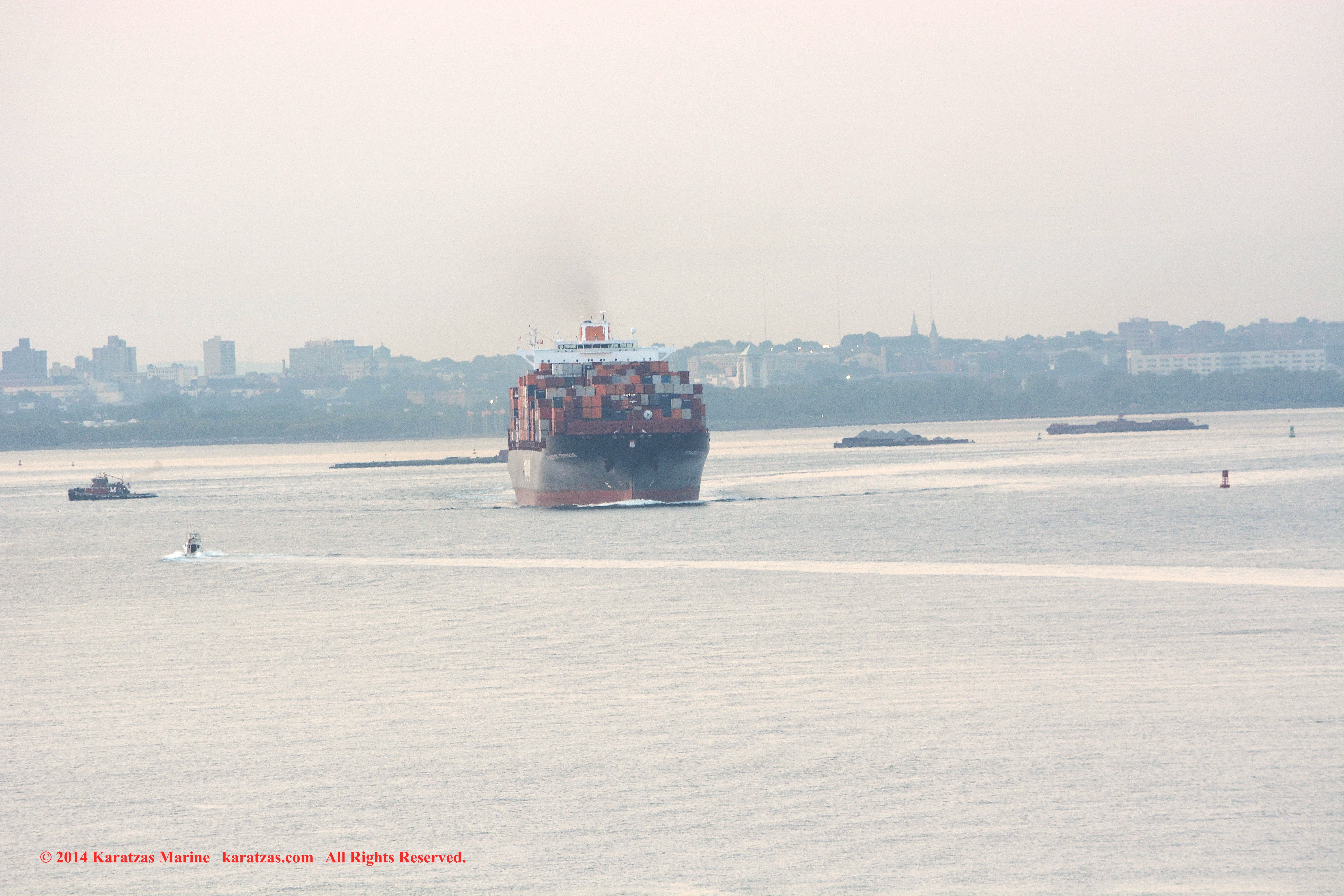 Images of MV ‘Essen Express’ in New York Harbor and the Statue of Liberty