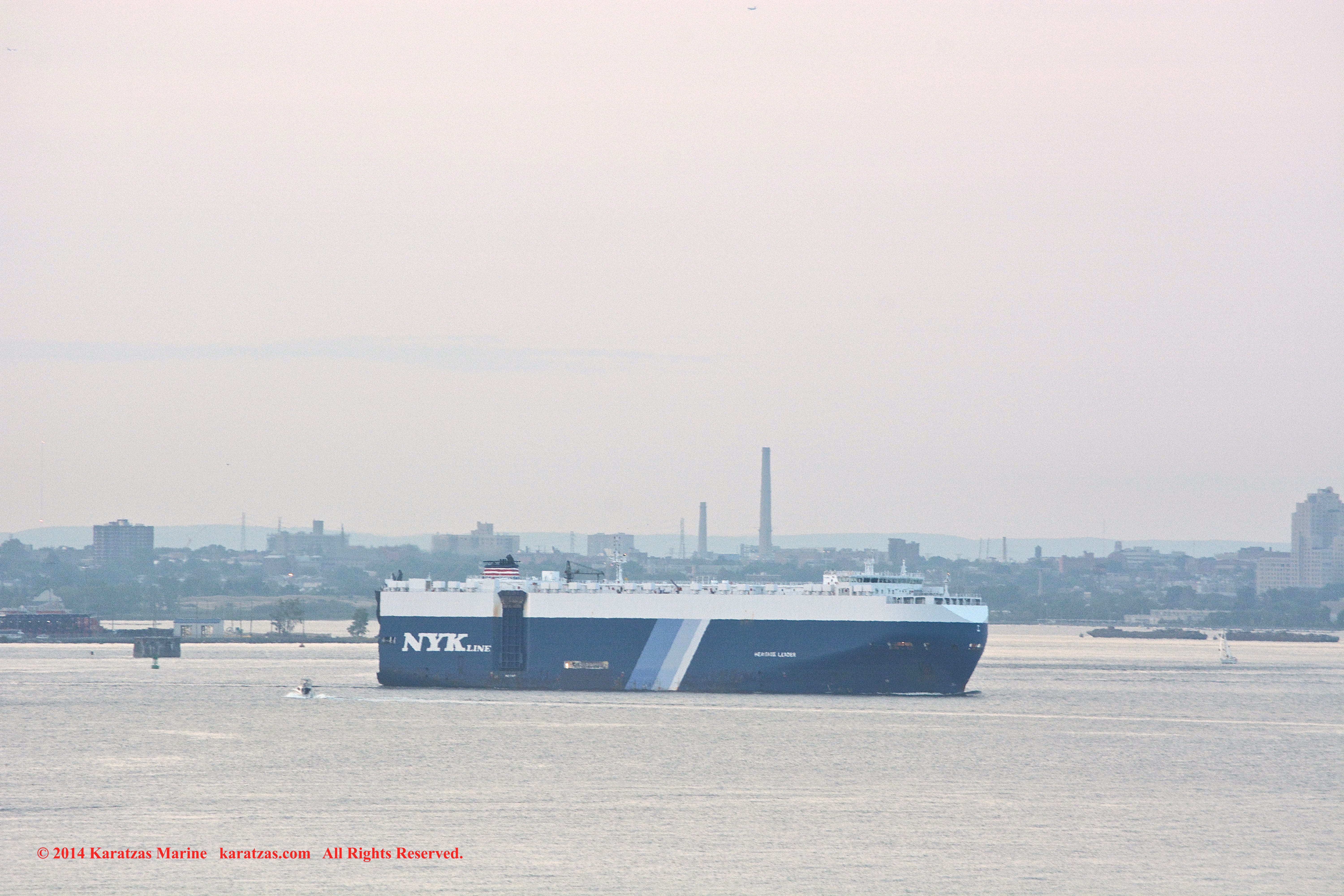 Car Carrier MV ‘Cygnus Leader’ arriving at New York Harbor on rainy summer afternoon. karatzas.com