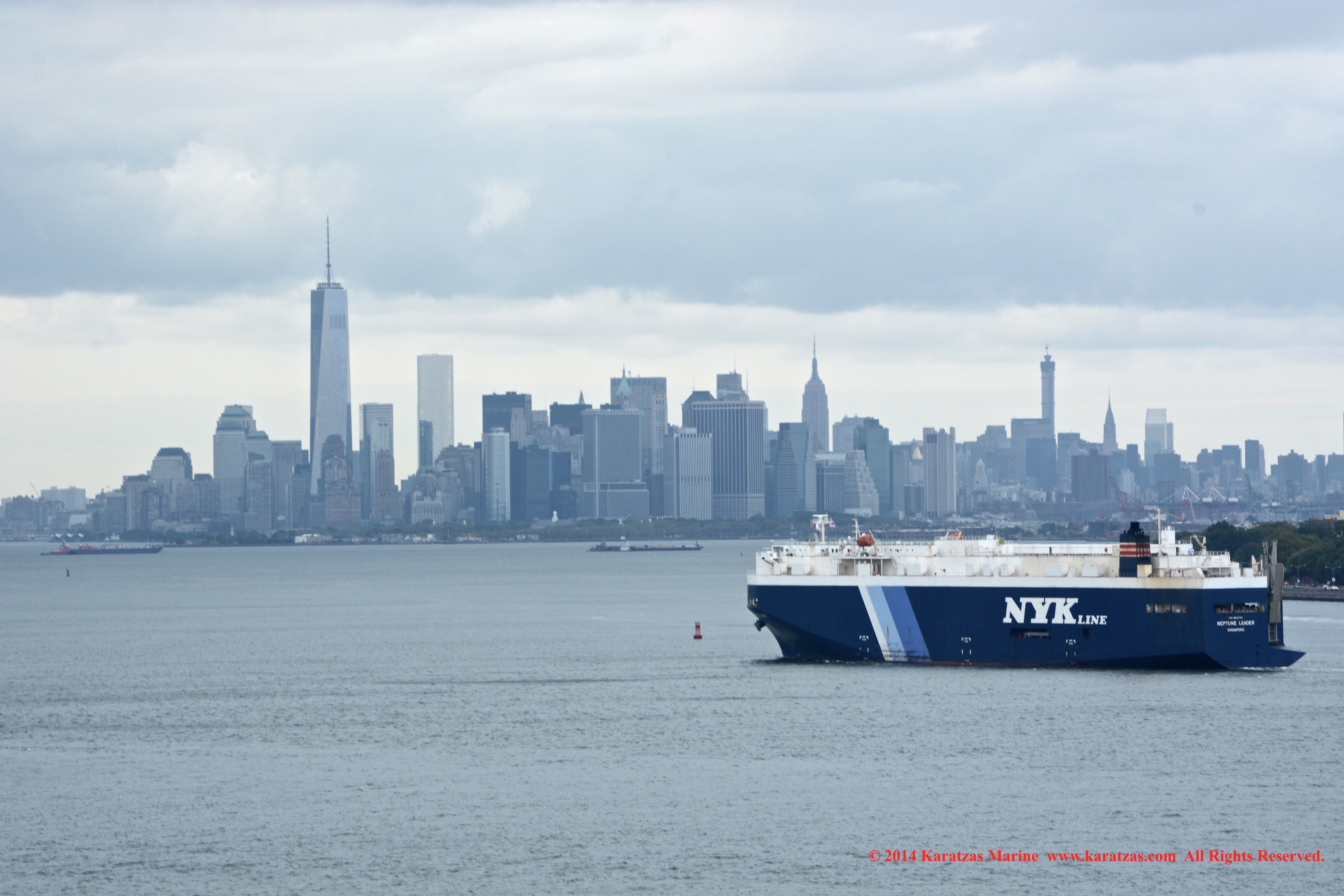 Images of MV ‘Global Vision’ Photographed Against the Manhattan Skyline