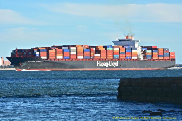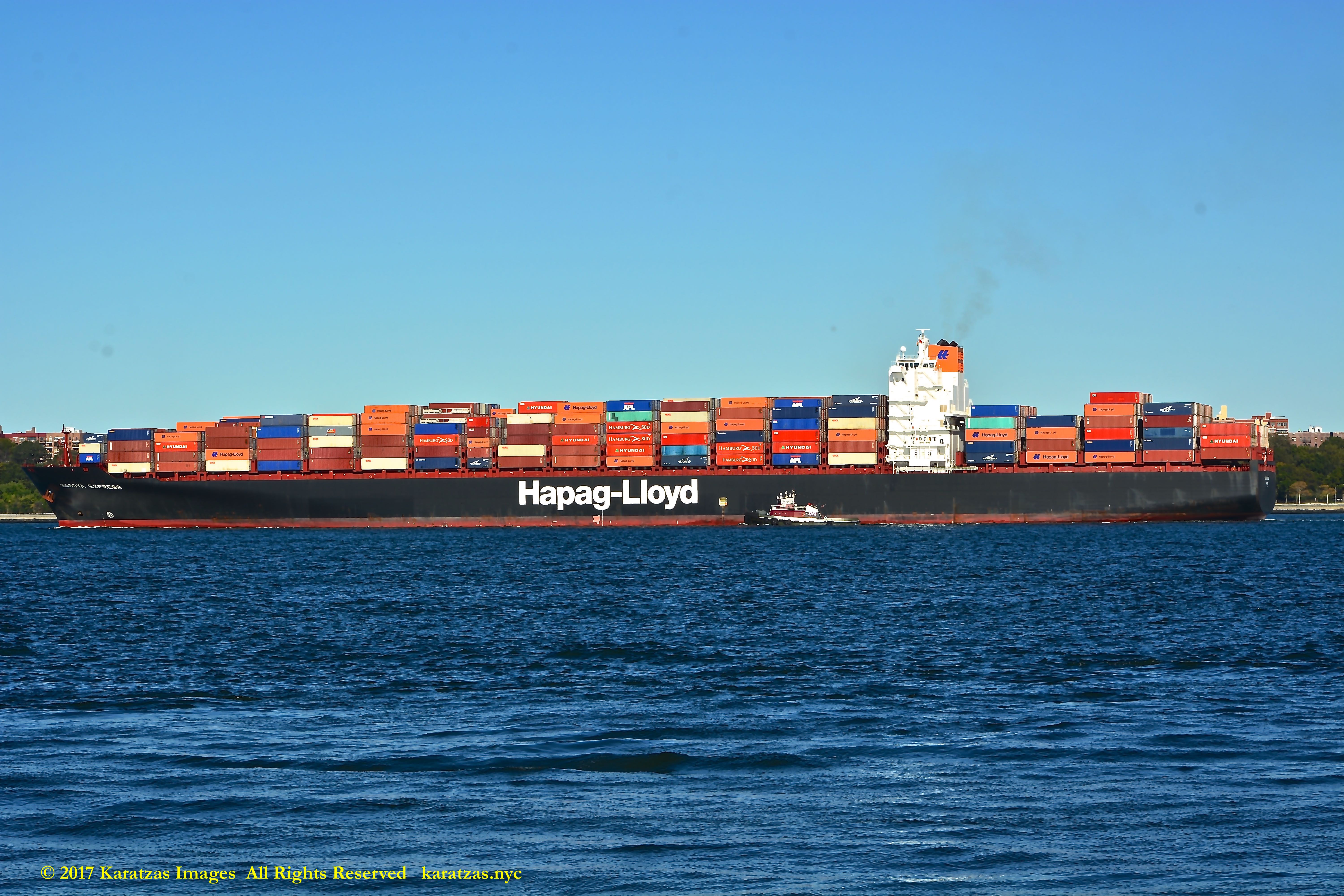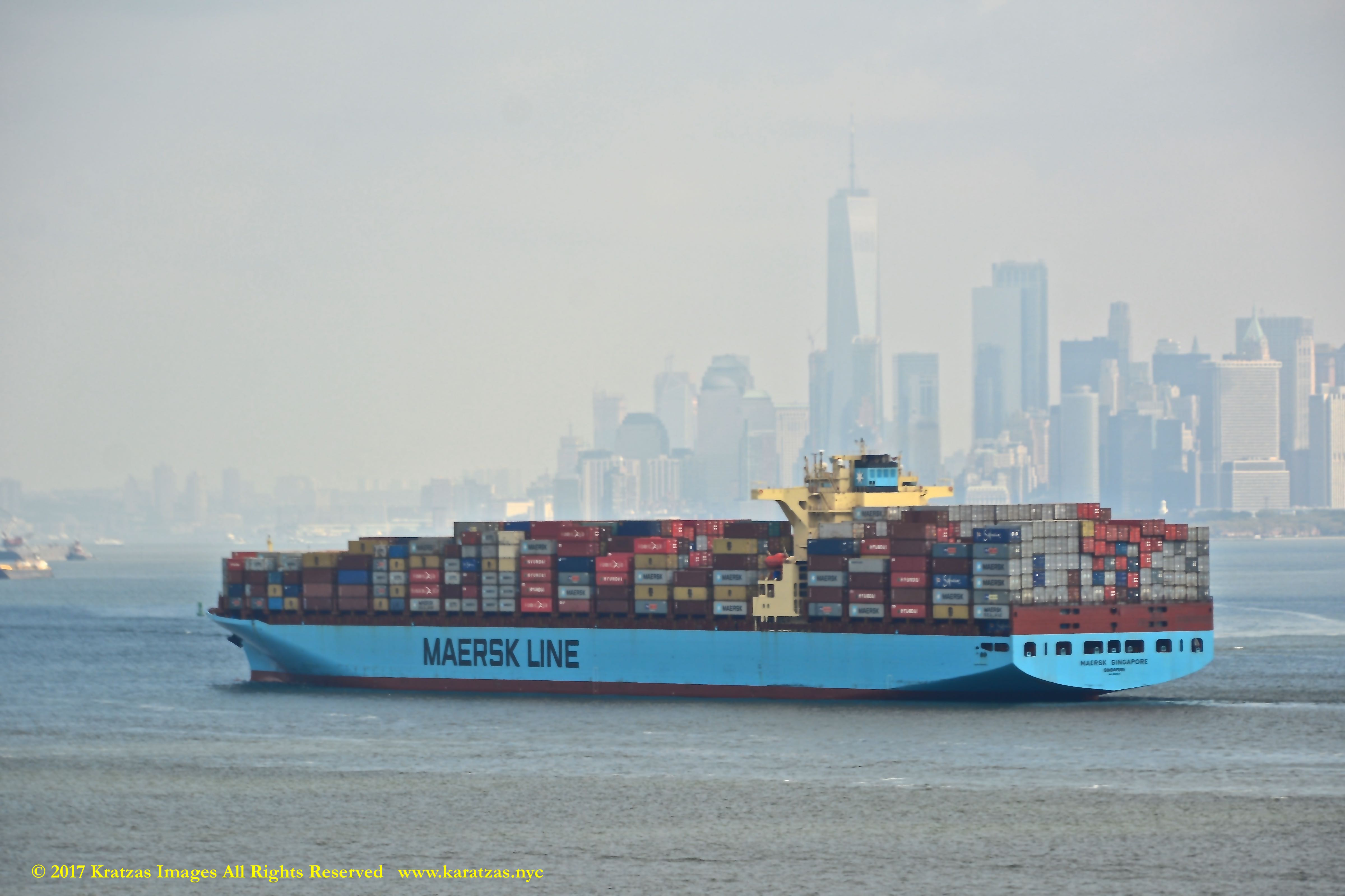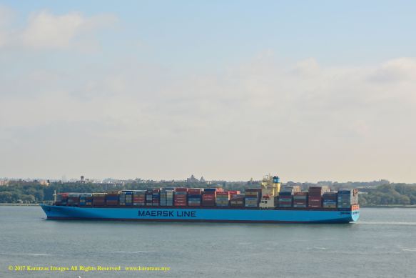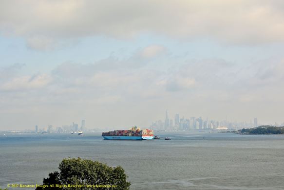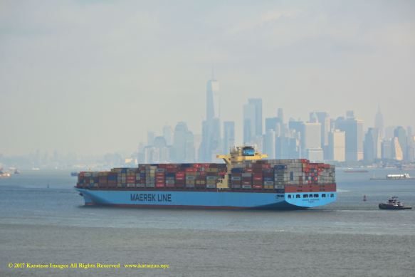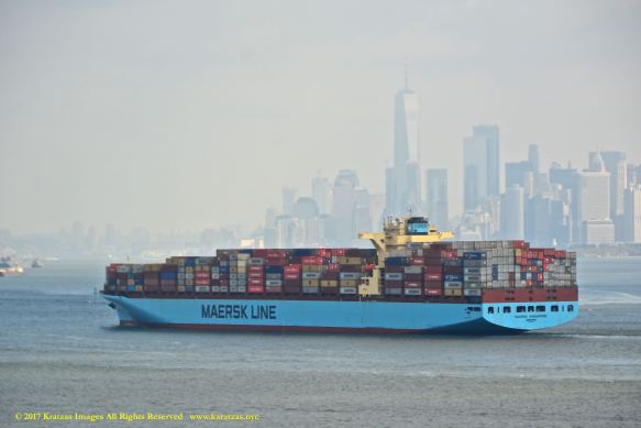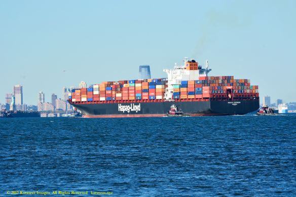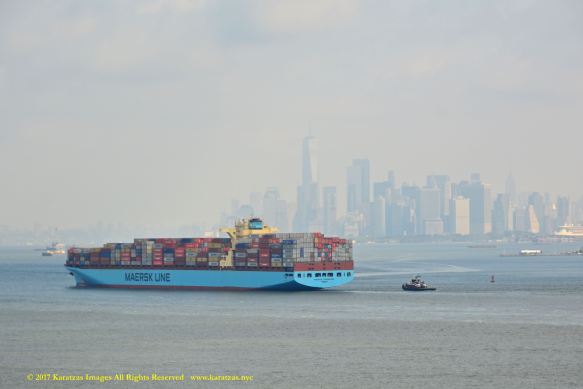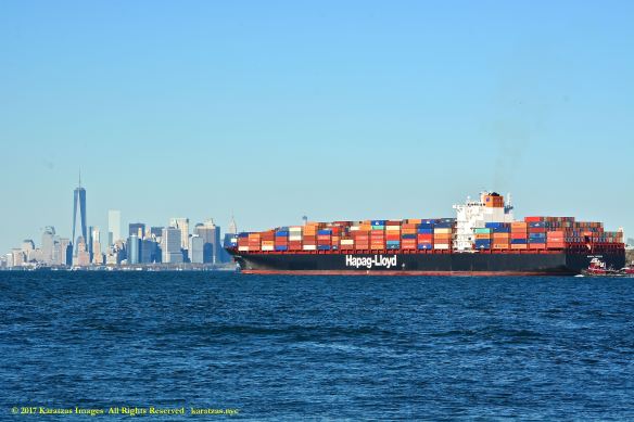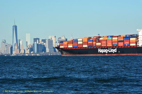 Distinctively painted in magenta bright colors of the Ocean Network Express (ONE) containerships, containership MV ‘ONE Magnificence’ in New York Port. Images of similarly bright containership MV ‘ONE Minato’ in New York can be seen here.