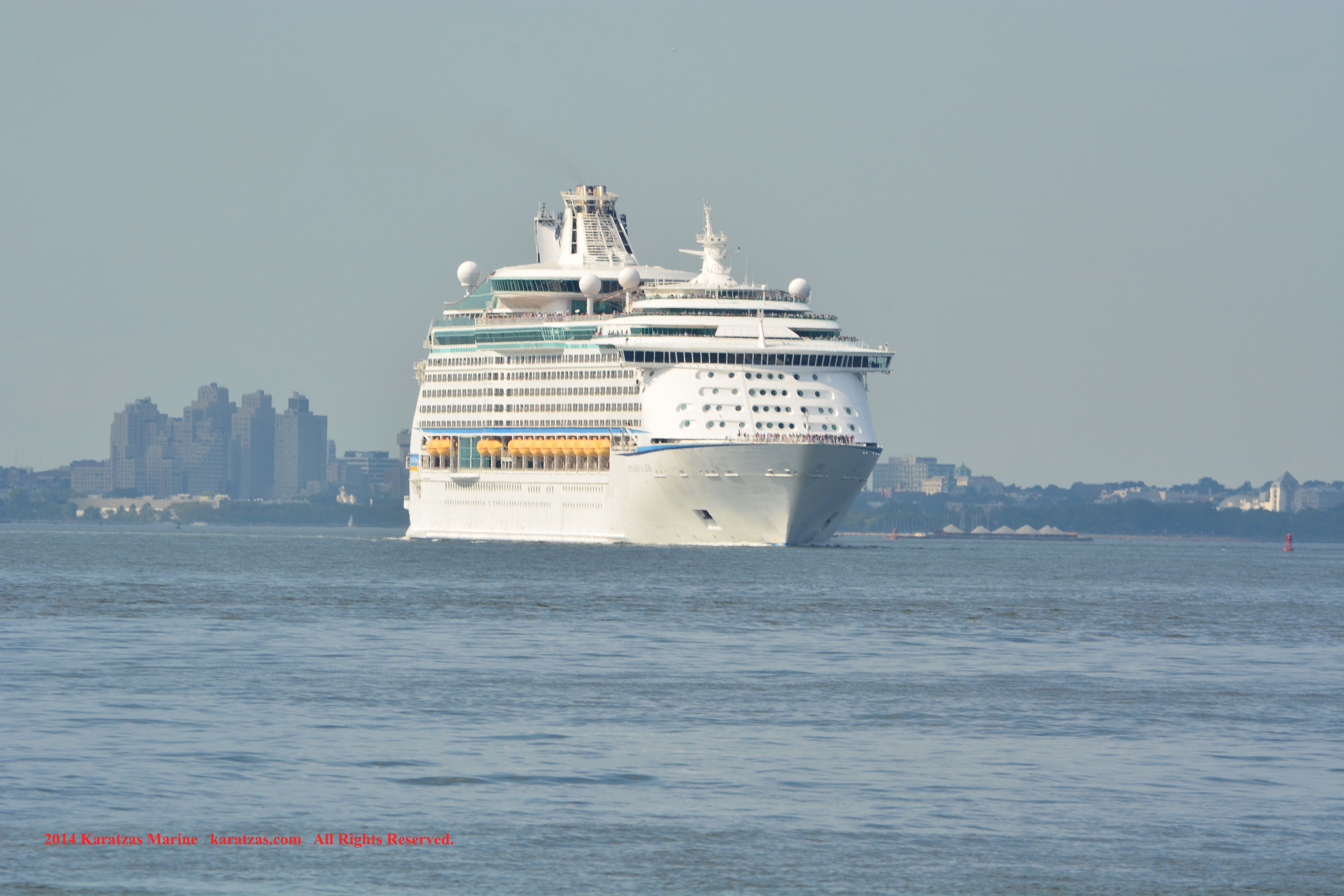 Royal Caribbean’s ‘Explorer of the Seas’ (3,100 berths, built at Kvaerner Masa in 2000) departing New York Harbor. karatzas.com