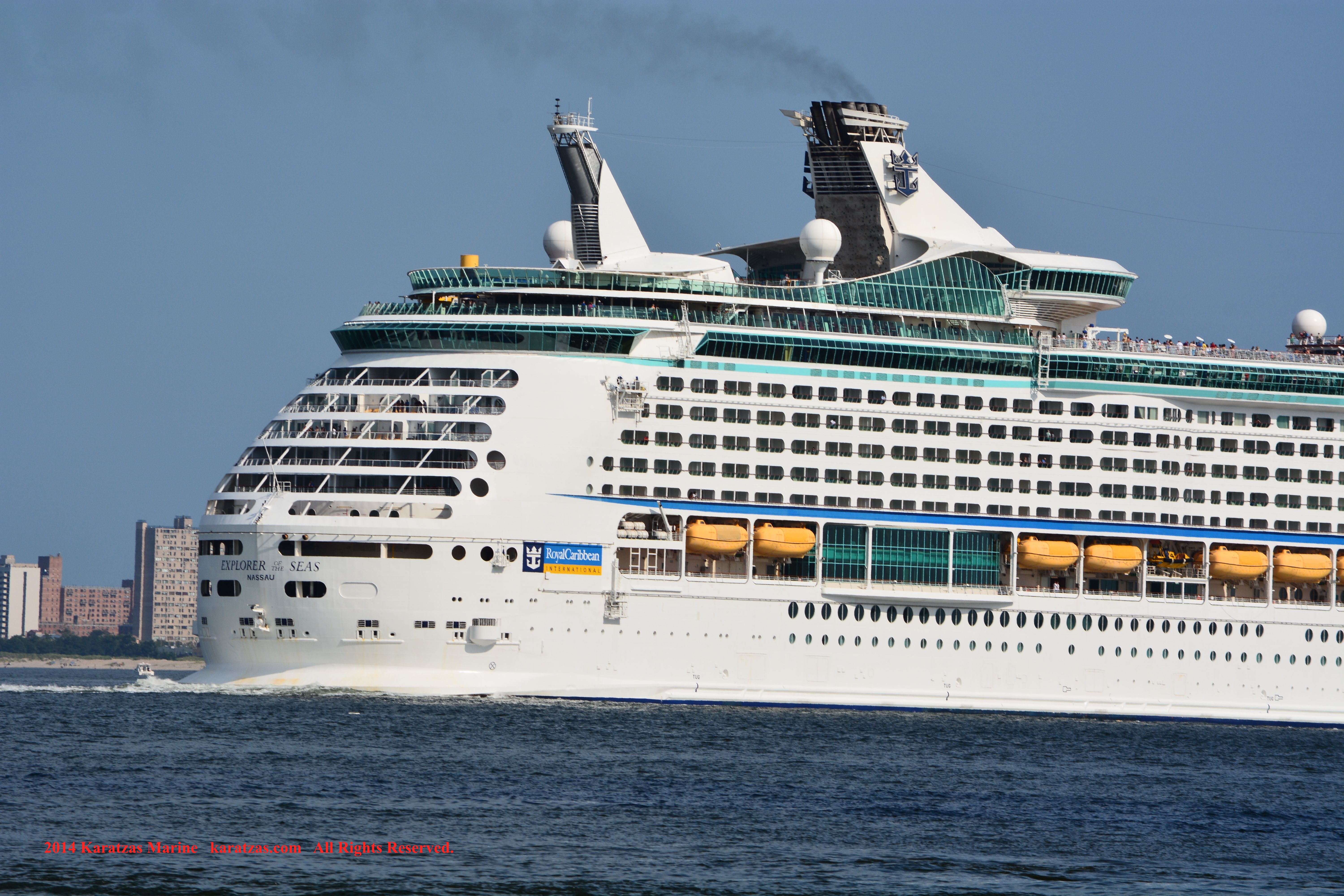 Royal Caribbean’s ‘Explorer of the Seas’ (3,100 berths, built at Kvaerner Masa in 2000) departing New York Harbor.   karatzas.com
