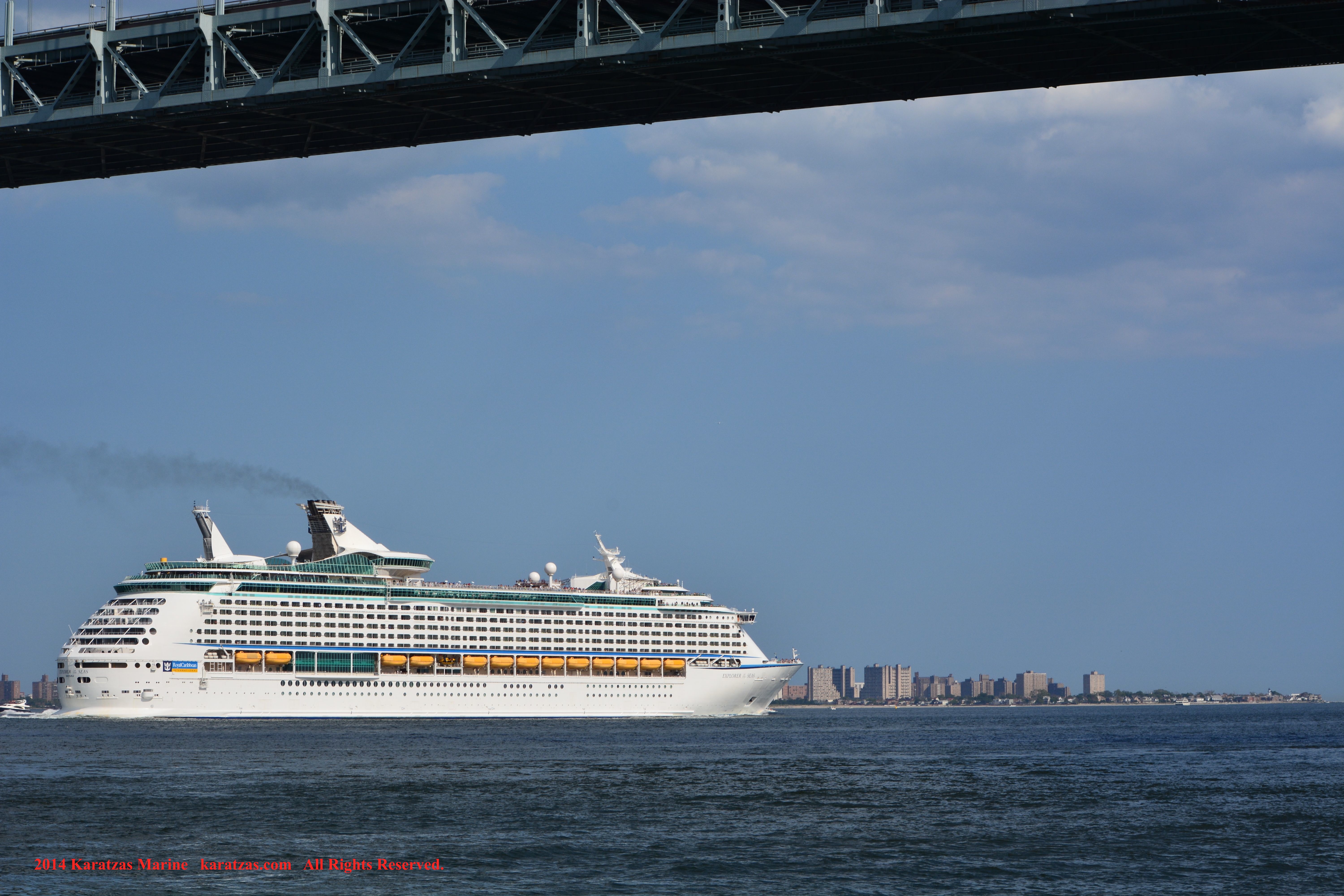 Royal Caribbean’s ‘Explorer of the Seas’ (3,100 berths, built at Kvaerner Masa in 2000) departing New York Harbor. Passing under the Verrazano-Narrows Bridge.   karatzas.com